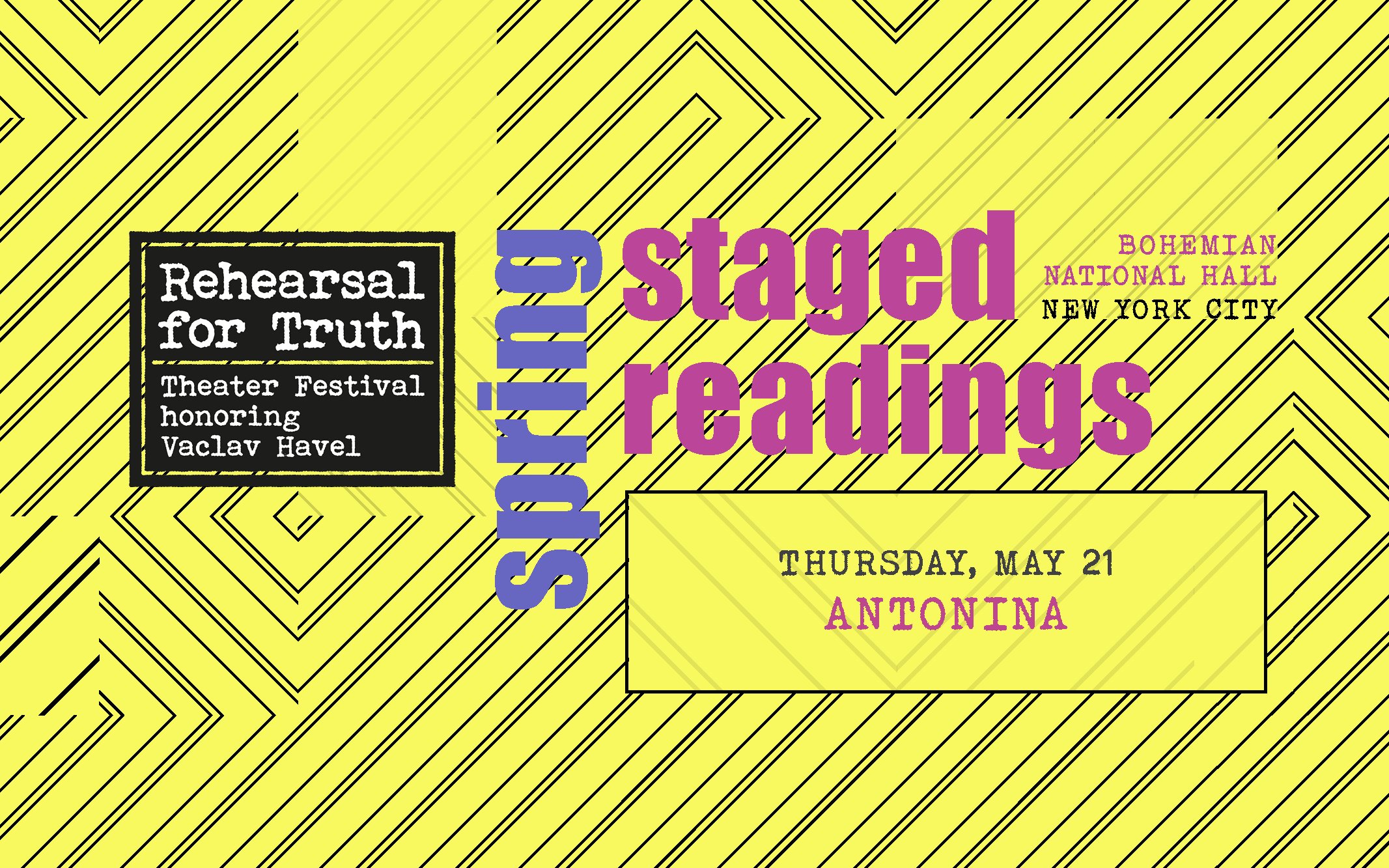 Rehearsal for Truth International Theater Festival, honoring Václav Havel, is a showcase of contemporary European theater organized each year in New York City. Conceived in 2017 as a shared endeavor of the Václav Havel Center (VHC) and Bohemian Benevolent and Literary Association (BBLA), the festival honors the legacy of Czech playwright, dissident and political thinker Vaclav Havel.